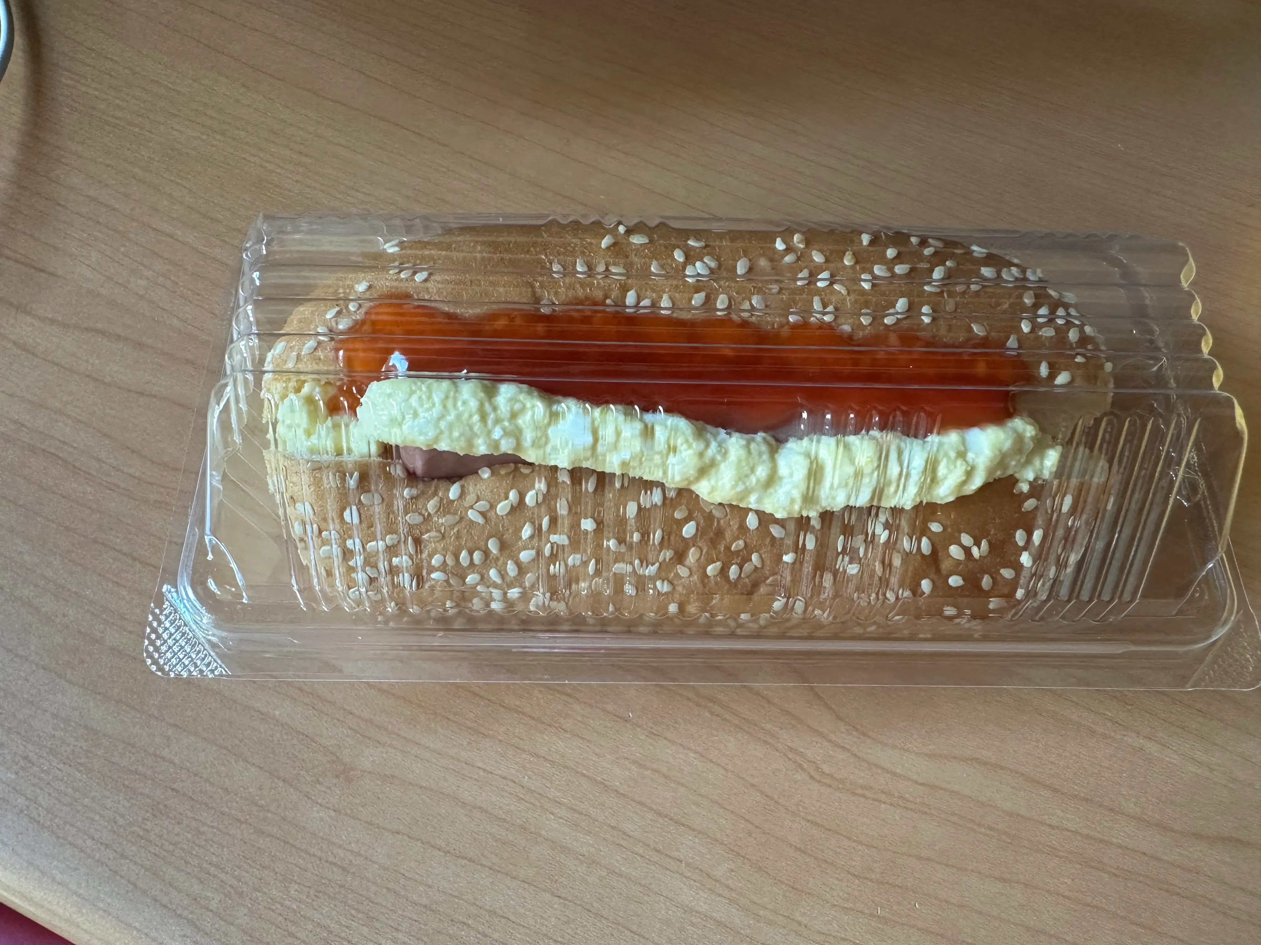 有時候比較晚去,大概快 9:40 才到,吃到 10 點左右。這時候叔叔會讓我們把剩下的食物分掉,不然就要丟掉了,所以多拿的其實不用扣點。我這學期就遇過三次:兩次多拿了一個熱狗堡和三顆蛋;有一次是最後一批拿的,拿了四個三明治和九顆蛋,手都快拿不動了,結果還剩三個三明治,最後叔叔就丟掉了,有點可惜。不過我通常都會把這些當作當天的午餐,很方便。