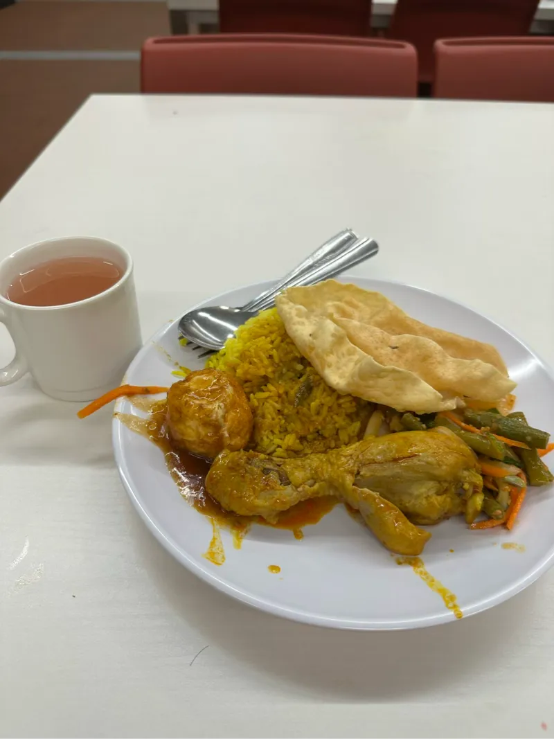 食堂提供的餐點種類有 vegetarian、hala、non-hala,餐點重複率不高。用 app 可以提前查看每天的菜單,方便規劃。