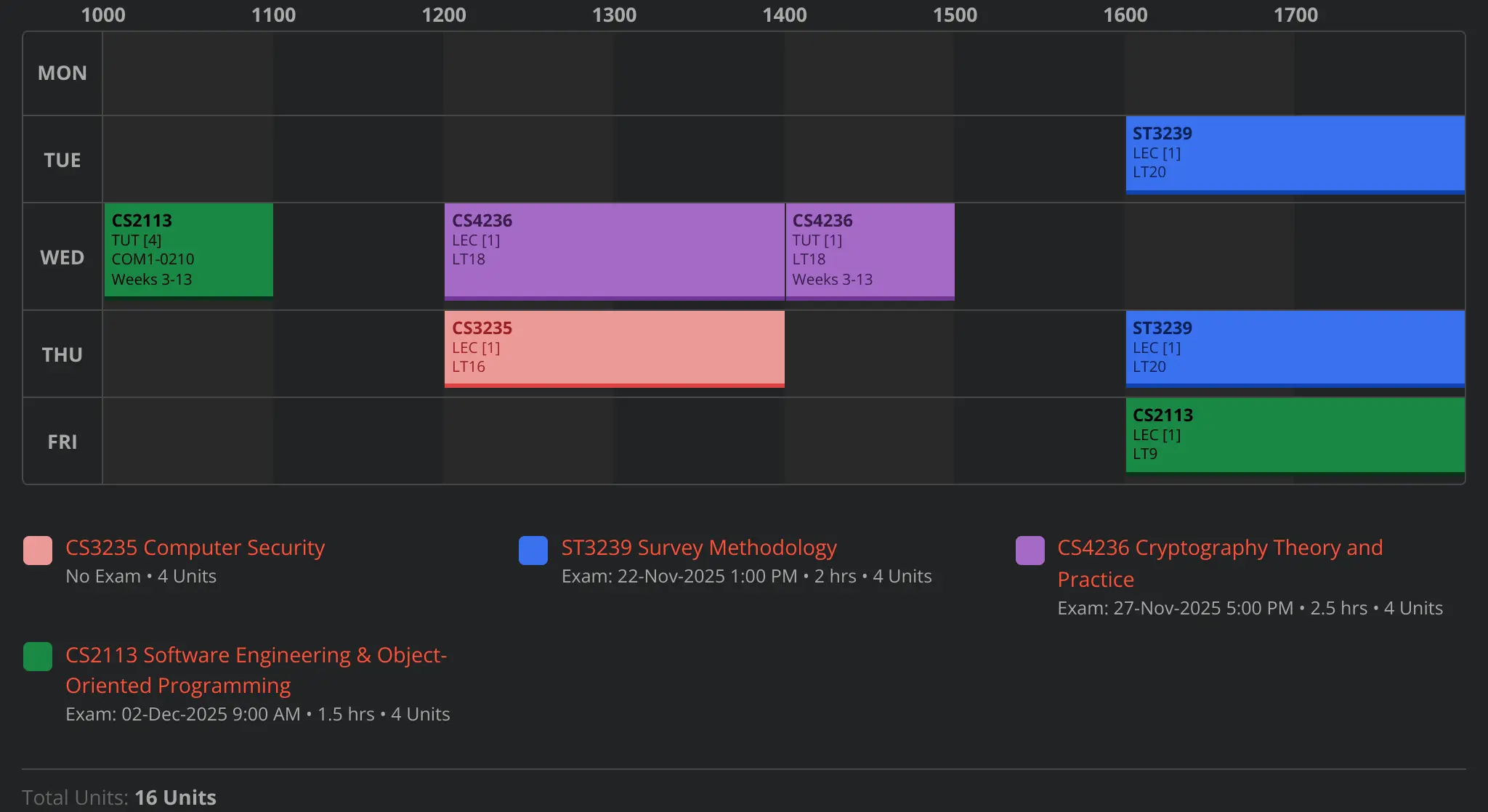 I’m not entirely sure about the exact grading criteria. It’s commonly said that grades are based on a bell curve, but the cutoff points are not publicly disclosed. Personally, I didn’t find the courses in Singapore to be significantly harder. In fact, some of them felt relatively manageable. There are usually around two weeks of break before midterms and finals, and the exam scope is reasonable and not overwhelming.